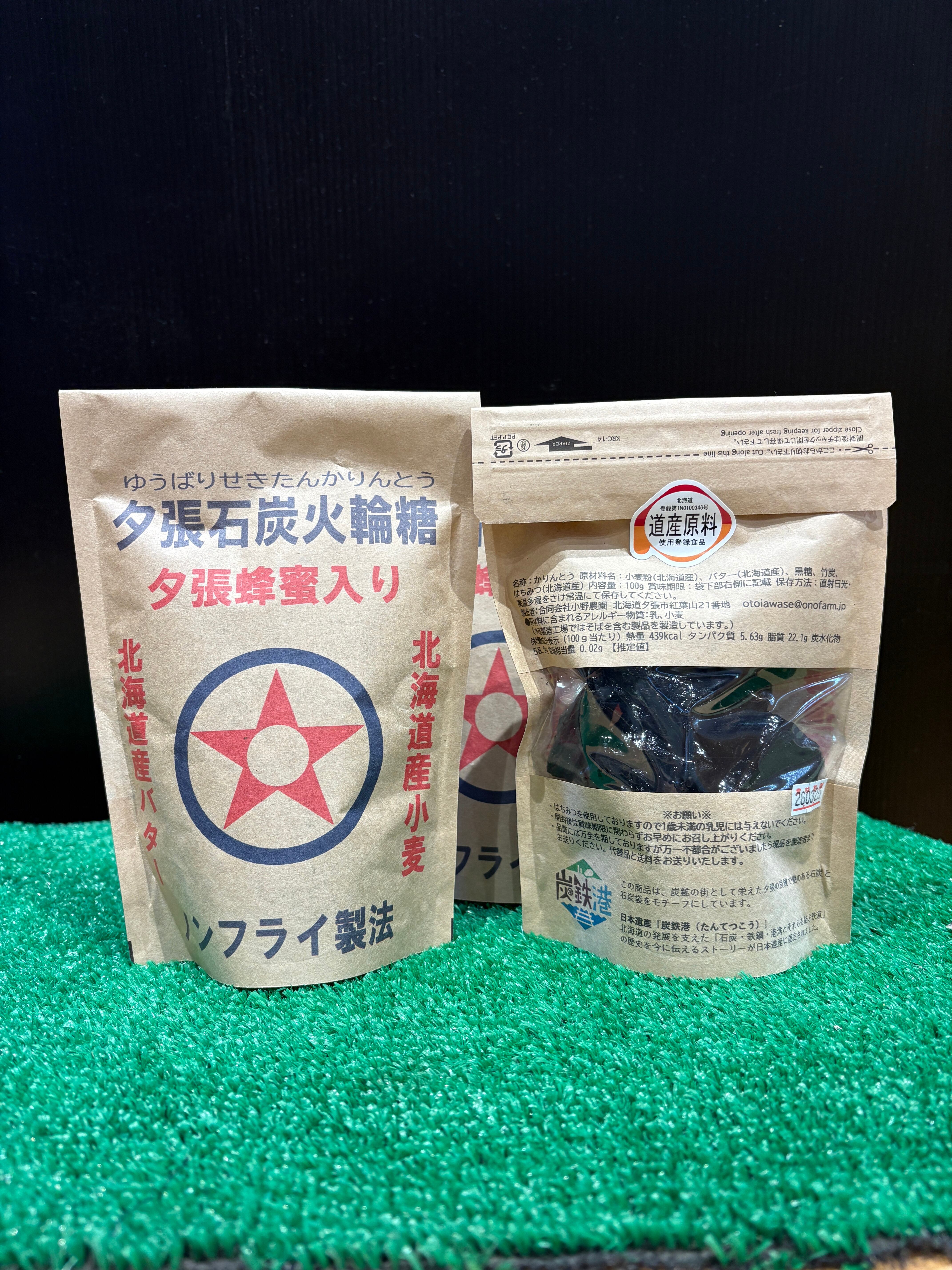 原材料 小麦(北海道産)、バター(北海道産)、黒糖、竹炭、はちみつ(夕張産)